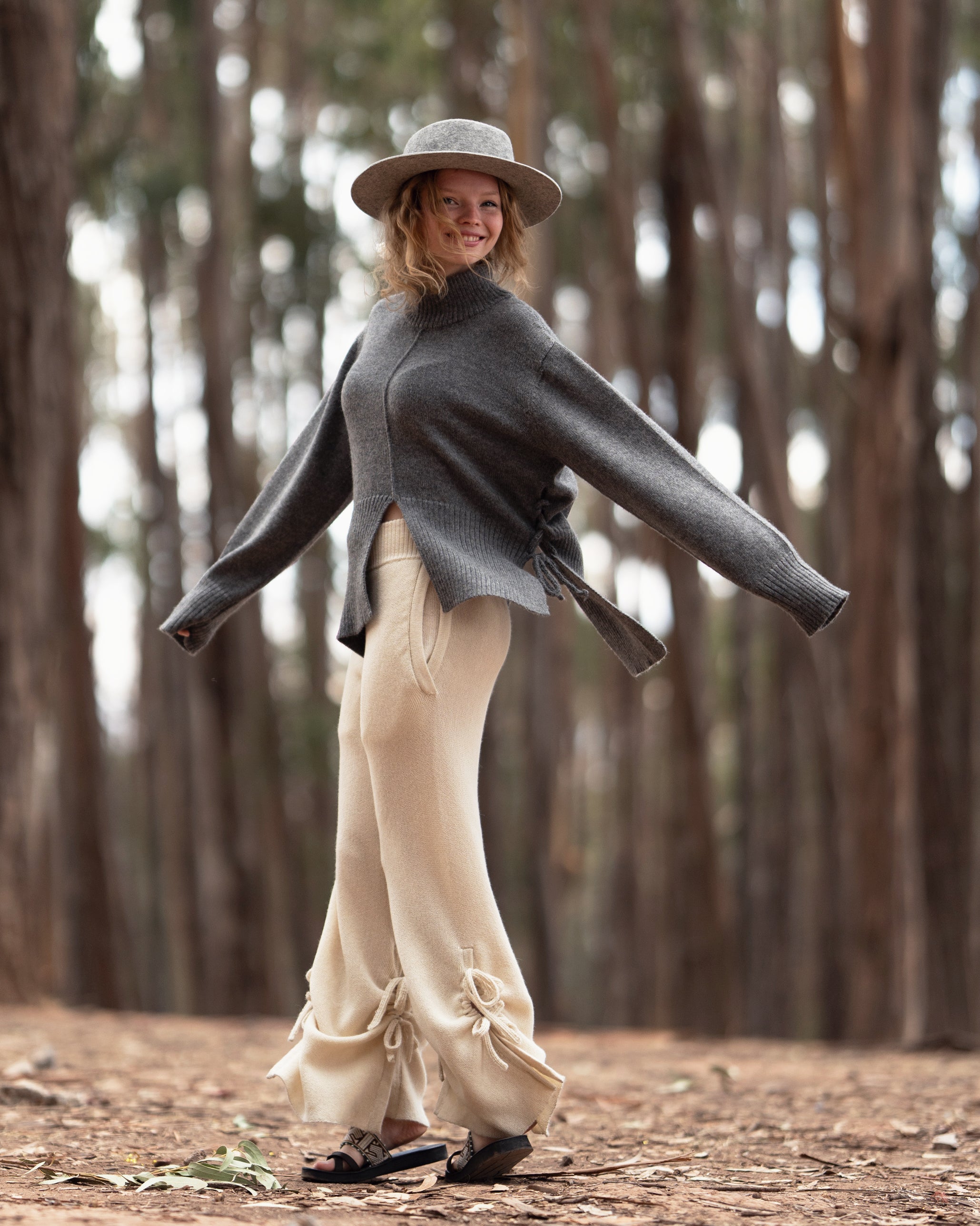 Kipu-style pants with functional pockets and sophisticated ankle ties. Crafted in natural alpaca fiber, providing exceptional softness and warmth. Modern cut with artisanal touches that reflect Andean textile heritage. Ideal for temperate or cold climates. Handmade in Peru.